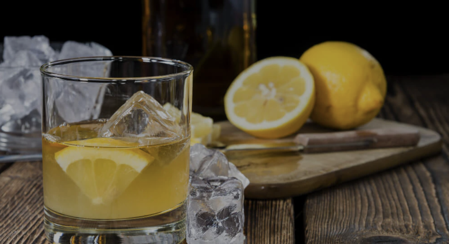 *add ingredients to a shaker, shake and strain into glass with ice, lemon garnish
